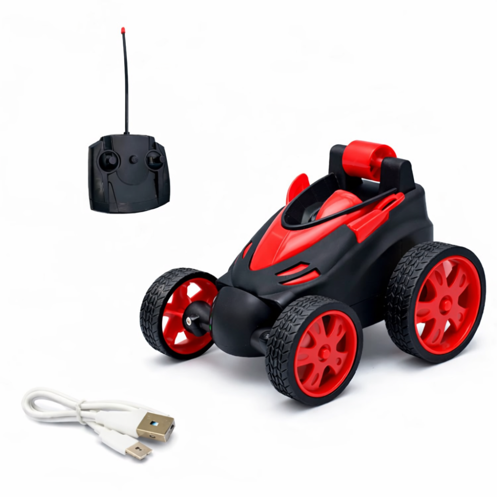Made from durable plastic material, this small stunt car is lightweight, portable, and easy to handle—perfect for kids aged 3+ years with simple radio remote control.